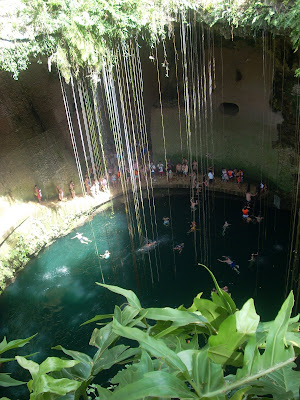 A swimming hole... used to be a cave until the top collapsed in on itself.